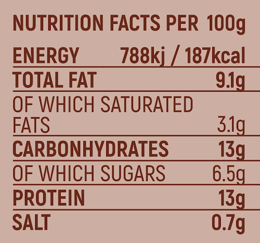 Cottage cheese, wheat flour, egg powder, sugar, chocolate chips, salt.